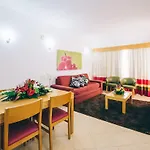 Uma grande quantidade de extras: TV com canais via satélite, controle de temperatura, ferro e tábua de passar. O hotel tem uma localização boa. Ficamos no apartmento deluxe com um banheiro banheiros adaptados. O café da manhã custa 9 eur por pessoa. Foi a minha opção em Albufeira.